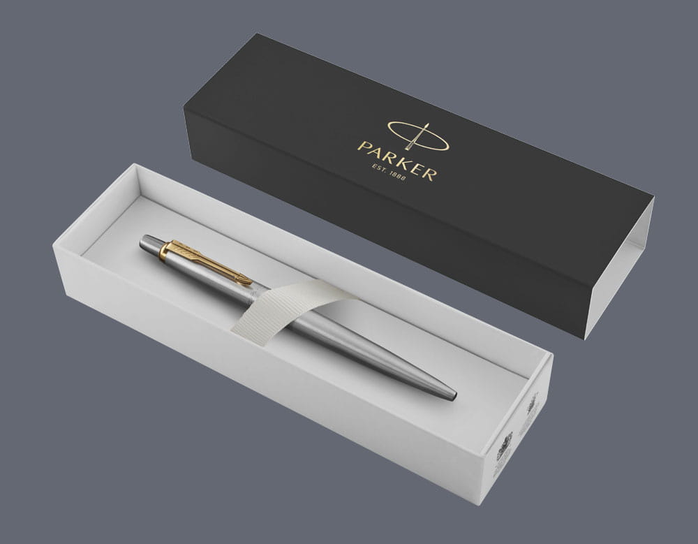 Długopis Jotter w nowej odsłonie Parker 2016. Nowy kształt klipsa (pozłacany). Skuwka oraz korpus wykonane z polerowanej stali. Kraj pochodzenia: Francja. Przyciskowy mechanizm uwalniania wkładu. Nowe eleganckie pudełko!