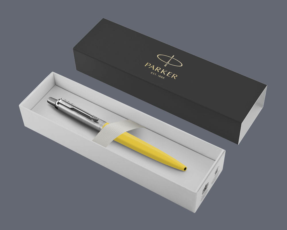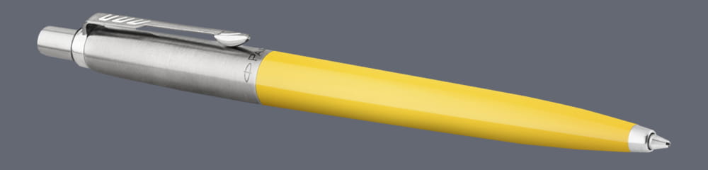 Klasyczny długopis Parkera, niedościgniony wzór prostoty połączonej z komfortem użytkowania. Korpus odlany z żywicy w kolorze żółtym. Nasadka wykonana z delikatnie szczotkowanej. Klips lśniący chromem. Przyciskowy mechanizm wysuwania wkładu. Wkłady standardowe PARKER QUINKflow.