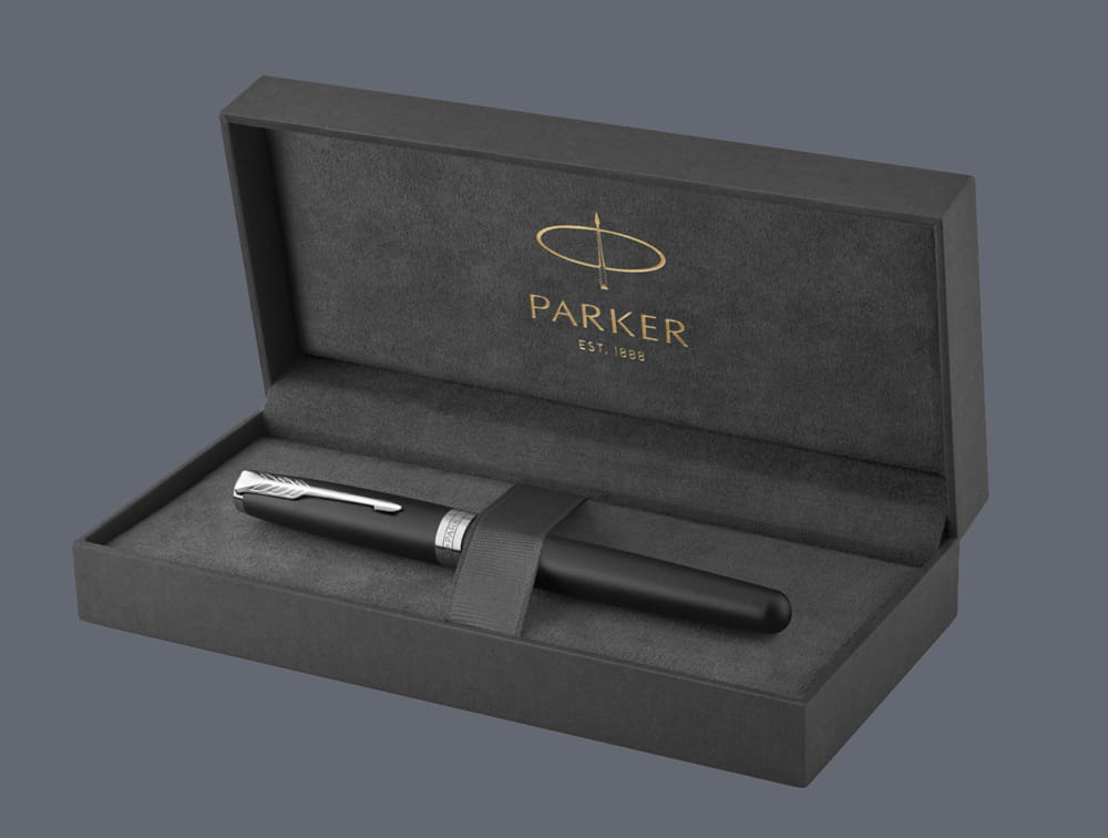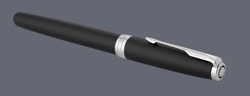 Najnowsza kolekcja Parker 2016 objęta Królewską Gwarancją nadaną przez JKM Elżbietę II oraz JKW księcia Walii umieszczoną z boku opakowania. Korpus i nasadka proszkowane na czarny mat. Potrójny pierścień skuwki i wykończenie sekcji platerowane stopem niklu i palladu. Klips i korona nasadki, jak i wieńczący ją emblemat Parkera również pokryte niklowo-palladową powłoką. Pióro przystosowane do wkładów do rollerów Parker.